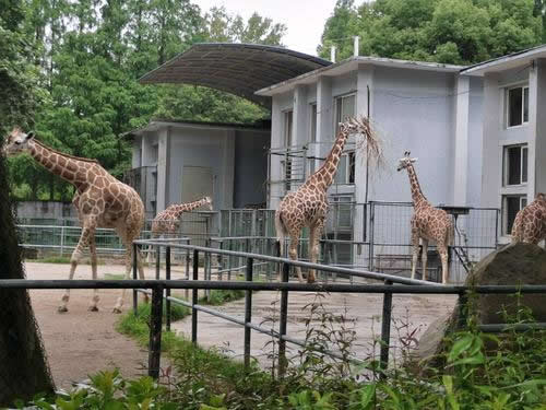 上海動物園長頸鹿館始建于1965年,總建筑面積712平方米,分為東西兩個獨立的籠舍。每個籠舍都有單獨的小間,以備有小崽出生時用。由于長頸鹿身高腿長,為了滿足它們基本活動的需要,室外活動場面積達(dá)2180平方米,場內(nèi)種植草地和大樹。由于圍欄網(wǎng)高度1.20米,游人參觀時視線不受阻擋,可直接觀察長頸鹿的一舉一動。