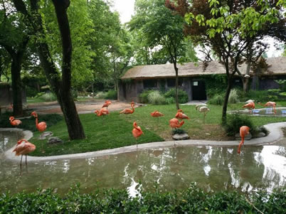 上海動物園火烈鳥生態(tài)園于2002年建成的,坐落于天鵝湖的東邊,面積有200多平方米。這個展區(qū)完全采用了流行的視覺無障礙設(shè)計理念,游客可以近距離地參觀可愛的火烈鳥。