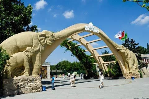 上海動物園月季園,位于長頸鹿展區(qū),雖面積不大,但小巧玲瓏。花壇中央是一個花瓣型的杯狀大理石涌泉,中心的三個球狀體表示花心。每年的五月與十月是月季盛開的主要季節(jié),此時,展區(qū)的品種月季、豐花月季、藤本月季同時競相開放,黃色系、紅色系的各種不同花色、不同花形的美麗月季,花香四溢、艷麗繽紛。