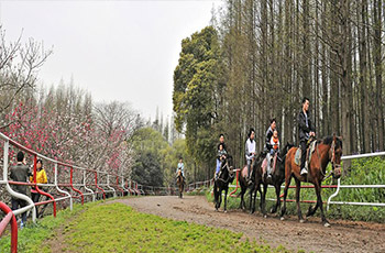 位于公園北部,叢林原野之西,占地約6.75萬(wàn)平方米。在密林中設(shè)寬4米,長(zhǎng)300米的環(huán)形跑道,磚、石碴路基,泥夾沙路面。兩邊設(shè)有鋼筋混凝土柱和鐵索的護(hù)欄。開始僅有上海電影制片廠寄養(yǎng)的6匹馬,1988年后陸續(xù)從陜西、新疆購(gòu)進(jìn)馬匹,形成有40匹馬,設(shè)施比較完備的騎馬娛樂場(chǎng)。