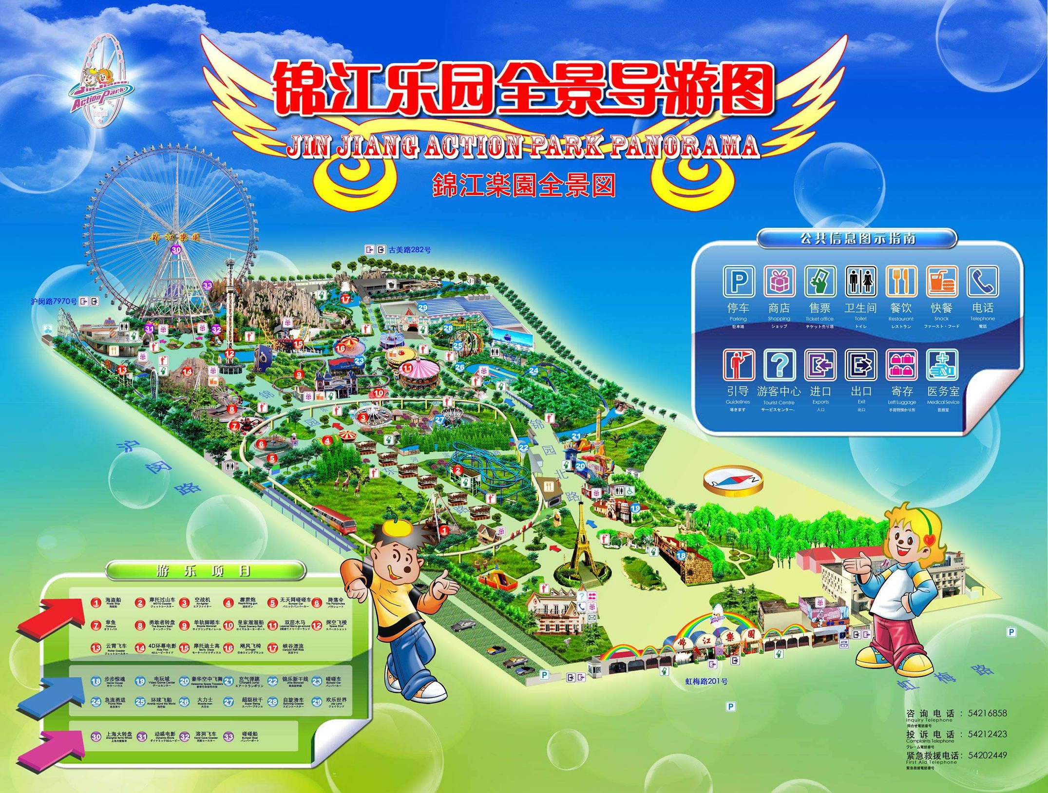 錦江樂園的配套服務(wù)有:休閑屋、餐廳、商場(chǎng)、客房、旅行社以及旅游客運(yùn)服務(wù)。