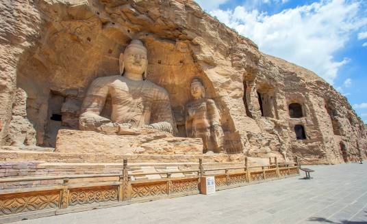 云岡石窟,原名靈巖寺、石佛寺。位于山西省大同市西郊17公里處的武州山南麓,是中國(guó)著名的石窟群之一。云岡石窟的開鑿始于北魏時(shí)期,北魏皇始三年(398年),道武帝拓跋珪將都城從盛樂(今和林格爾縣)遷至平城(今大同市),武州山成為盛樂與平城之間的交通要沖。文成帝拓跋濬即位后,令沙門統(tǒng)曇曜主持復(fù)法大業(yè)。在文成帝的支持下,曇曜選擇了鐘靈毓秀的武州山,"鑿山石壁,開窟五所,鐫建佛像各一,高者七十尺,次六十尺,雕飾奇?zhèn),冠于一?quot;。云岡的大部分洞窟在孝文帝元宏遷都洛陽前完工,但是造像工程則一直延續(xù)到正光年間(520~525年)。云岡石窟的開鑿歷時(shí)約150年,歷經(jīng)北魏、東魏、西魏、北齊、隋、唐等朝代,現(xiàn)存主要洞窟45個(gè),大小窟龕252個(gè),石雕造像59000余尊,是中國(guó)石窟藝術(shù)寶庫(kù)中的瑰寶。