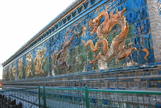 大同九龍壁位于山西省大同市內(nèi)東街南側(cè),是明太祖朱元璋第十三子朱桂代王府前的單面五彩琉璃照壁。