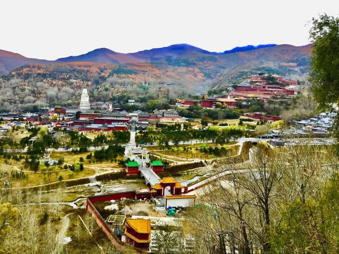 五臺山位居中國四大佛教名山之首,稱為“金五臺”,為文殊菩薩的道場。五臺山并非一座山,它是坐落于“華北屋脊”之上的一系列山峰群,最高海拔3061米。五座山峰(東臺望海峰、南臺錦繡峰、中臺翠巖峰、西臺掛月峰、北臺葉斗峰)環(huán)抱整片區(qū)域,頂無林木而平坦寬闊,猶如壘土之臺,故而得名。五臺山是中國唯一一個(gè)青廟(漢傳佛教)黃廟(藏傳佛教)交相輝映的佛教道場,現(xiàn)存宗教活動(dòng)場所共86處,其中多敕建寺院,多朝皇帝前來參拜。著名的有:顯通寺、塔院寺、菩薩頂、南山寺、黛螺頂、廣濟(jì)寺、萬佛閣等。
