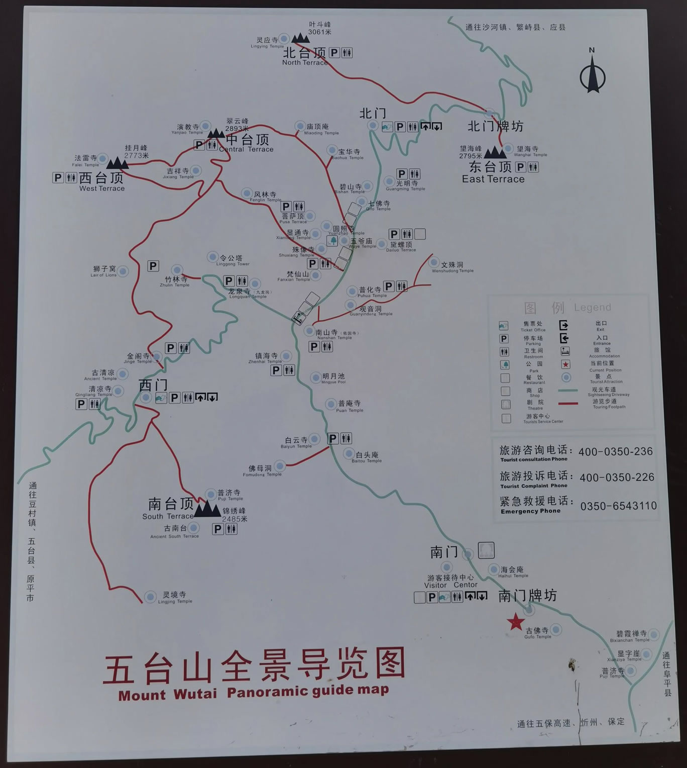 五臺山,方圓250公里,總面積2837平方公里。以臺懷鎮(zhèn)為中心,周圍屹立著東、西、南、北、中五個(gè)山峰,高出云表,山頂無林木,如壘土之臺,稱作五臺。最高點(diǎn)北臺葉斗峰海拔3058米,被稱為“華北屋脊”。