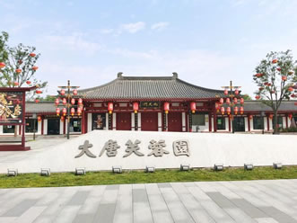 曲江胡店,也稱南碼頭。曲江胡店是全面展示唐代經濟外交的重要場所。唐朝大量的外國人和少數民族來到了唐代長安城,各種文化在唐長安城匯集,正是不同的文化交流融匯造就了唐朝文化的獨特性及進取的精神。曲江胡店是陜西非物質文化遺產基地,展示了眾多陜西地方藝術,如面人,剪紙等。