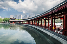 大唐芙蓉園,位于陜西省西安市雁塔區(qū)大雁塔東南側,占地面積1000畝,其中水域面積300畝。大唐芙蓉園是在原唐代芙蓉園遺址以北,仿照唐代皇家園林式樣重新建造的,是中國第一個全方位展示盛唐風貌的大型皇家園林式文化主題公園。