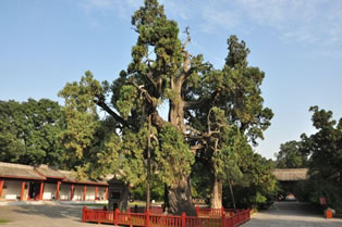 軒轅廟山門內(nèi)西側(cè)有一棵高大的古柏,即著名的“黃帝手植柏”,距今已有5000余年,相傳此樹為軒轅黃帝所植,故稱“黃帝手植柏”,又稱“軒轅柏”。