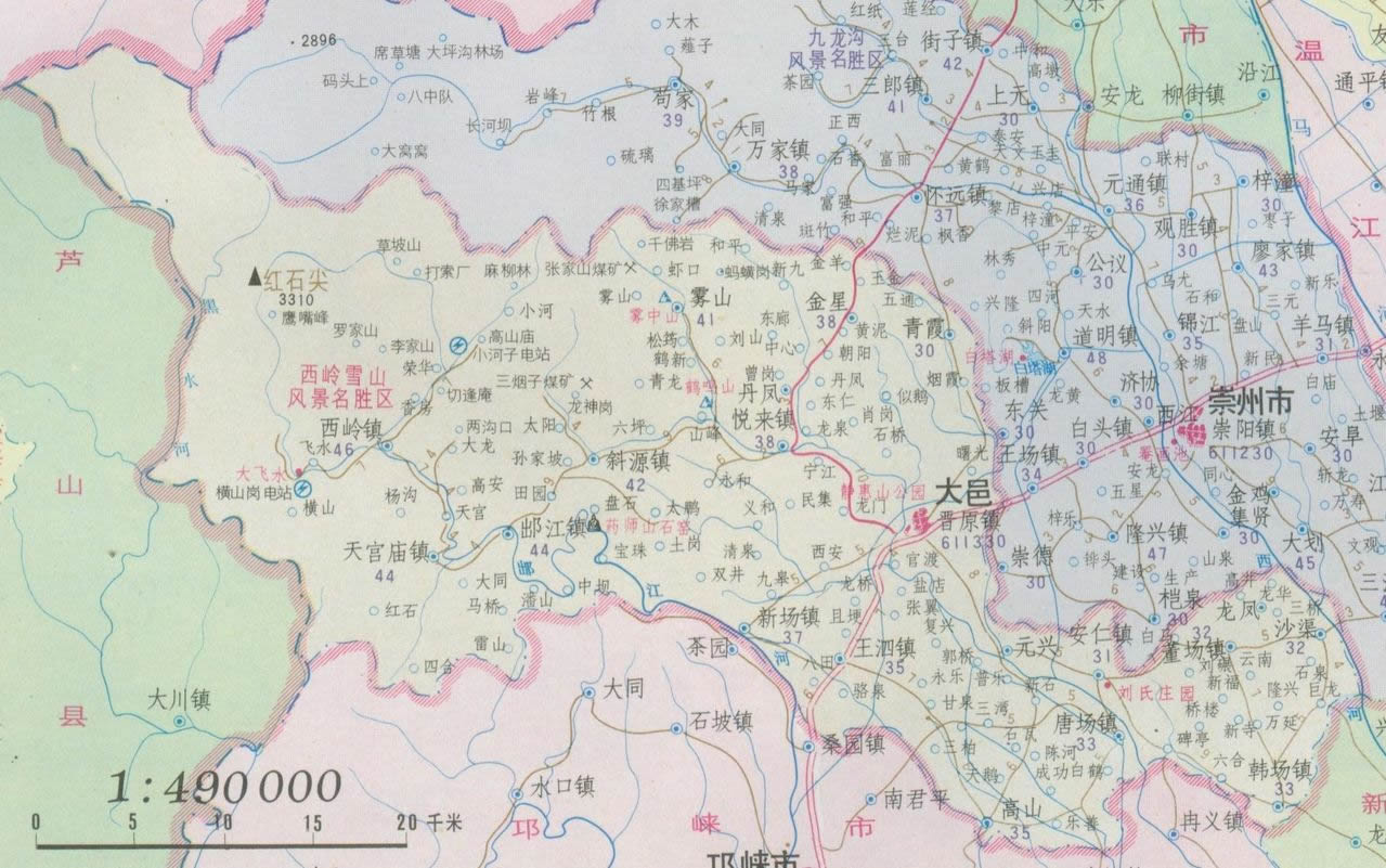 鎮(zhèn):晉原鎮(zhèn)、王泗鎮(zhèn)出江鎮(zhèn)、西嶺鎮(zhèn)斜源鎮(zhèn)、董場(chǎng)鎮(zhèn)韓場(chǎng)鎮(zhèn)、三岔鎮(zhèn)上安鎮(zhèn)、蘇家鎮(zhèn)新場(chǎng)鎮(zhèn)、安仁鎮(zhèn)、悅來(lái)鎮(zhèn)、青霞鎮(zhèn)沙渠鎮(zhèn)、蔡場(chǎng)鎮(zhèn)花水灣鎮(zhèn)