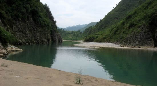 固軍鄉(xiāng)中河上游的沙清河,位于小河口(木臘溪出口)上方。此段河道兩岸兩山所夾形成陡峭峽谷。這里河水清澈,石壁怪狀,風景尤佳。雖交通不便,尚待開發(fā),但早已取吸了大批附近城鎮(zhèn)的游客前來旅游觀光。