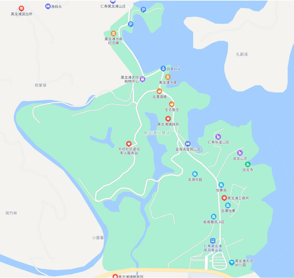 1986年,成立黑龍?zhí)讹L景名勝區(qū),后改名為黑龍灘風景區(qū)。黑龍灘風景區(qū)擁有7峽7壩85座群島,湖岸線長310公里,湖水面積23.6平方千米。截至2021年,黑龍灘景區(qū)已建成水庫、濕地公園、旅游度假區(qū)為一體的風景名勝區(qū)。