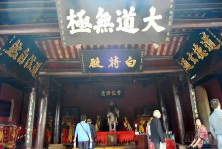 風(fēng)洞樓下是白特殿。“特”是比馬還能跑的動(dòng)物,它馬頭、驢身、騾尾、牛蹄,俗稱(chēng)“四不像”,古人說(shuō)“千里馬、萬(wàn)里特”。傳說(shuō)文昌帝君的坐騎就是全身色白的特,即“白特”,明代著名小說(shuō)家馮夢(mèng)龍?jiān)珜?xiě)對(duì)聯(lián):“梓潼帝君乘白特下臨凡界,三清老子騎青牛西出函關(guān)”。這座殿堂就因白特而得名。