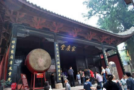 時(shí)雨亭旁的這座高臺(tái)建筑叫家慶堂。建于明代,叫啟元殿,清代培修之后更名為家慶堂。所謂“家慶堂”是指文昌帝君張亞子舉家歡聚之地。早在北宋初期,宋太祖趙匡胤就對(duì)張亞子一家8位主要成員加封圣號(hào);南宋初年宋高宗趙構(gòu)追封4位;又過(guò)了二十多年,南宋咸淳五年(1269年)再一次對(duì)張亞子的公主和女婿封了圣號(hào),使加封的家庭成員達(dá)到14位。