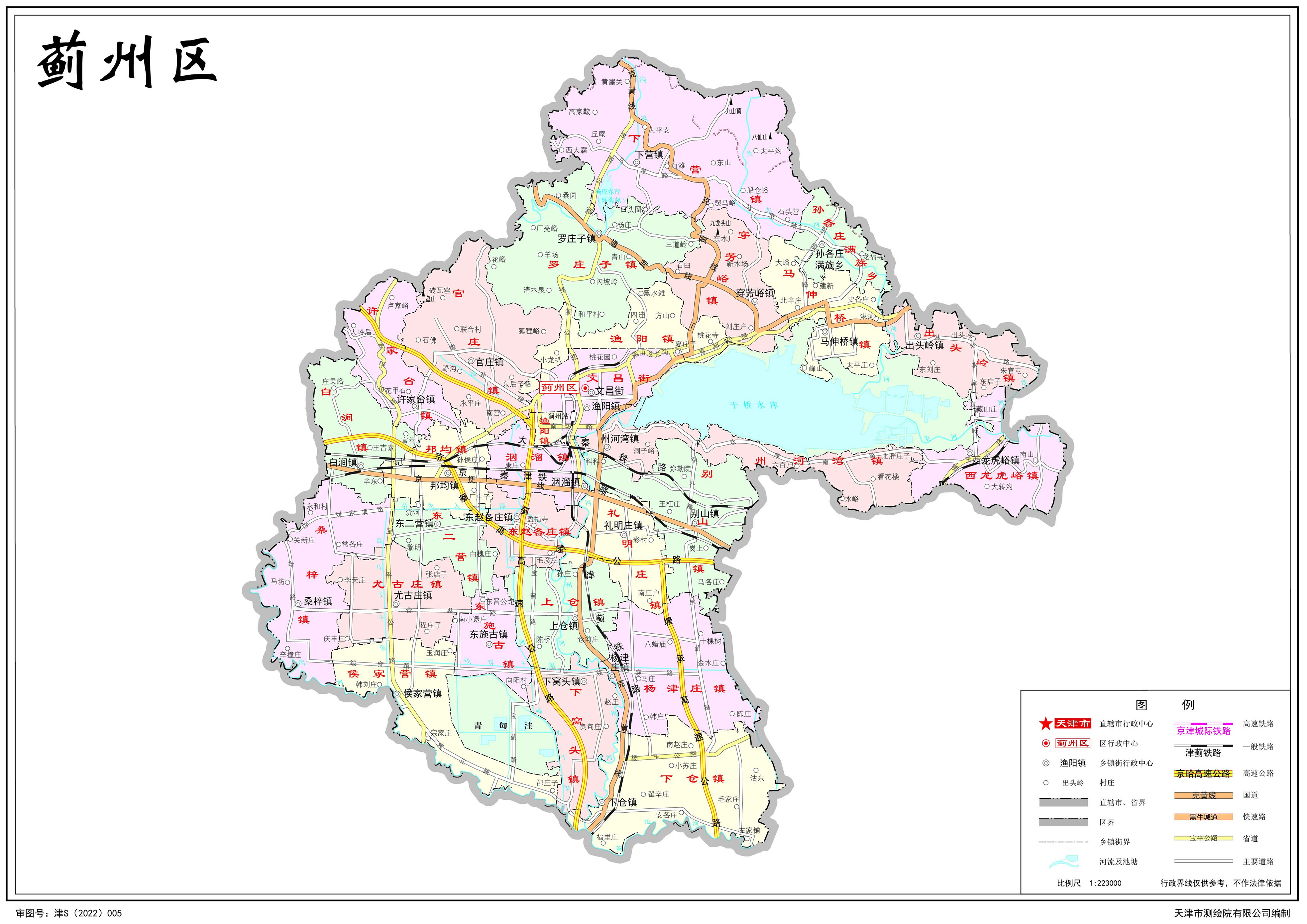 鎮(zhèn):漁陽(yáng)鎮(zhèn)、洇溜鎮(zhèn)、官莊鎮(zhèn)、馬伸橋鎮(zhèn)、下營(yíng)鎮(zhèn)、邦均鎮(zhèn)、別山鎮(zhèn)、尤古莊鎮(zhèn)、上倉(cāng)鎮(zhèn)、下倉(cāng)鎮(zhèn)、羅莊子鎮(zhèn)、白澗鎮(zhèn)、侯家營(yíng)鎮(zhèn)、桑梓鎮(zhèn)、東施古鎮(zhèn)、下窩頭鎮(zhèn)、楊津莊鎮(zhèn)、出頭嶺鎮(zhèn)、西龍虎峪鎮(zhèn)、穿芳峪鎮(zhèn)、東二營(yíng)鎮(zhèn)、許家臺(tái)鎮(zhèn)、禮明莊鎮(zhèn)、東趙各莊鎮(zhèn)、州河灣鎮(zhèn)