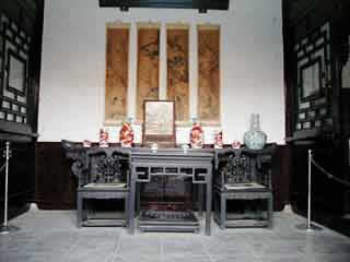 在甬道西側,現(xiàn)辟為"石府復原陳列"區(qū)。這是當年石家會晤賓客、娛樂消閑、誦經(jīng)禮佛的場所。裝飾陳設豪華。有四扇木雕花屏,被稱為國寶,當時工價1200兩白銀,一朵花、一片葉就合6兩白銀。室內(nèi)設備講究。有一間客廳地下有暖風通道,冬天在墻外地爐里每天燒木炭200斤,向室內(nèi)地下供熱。