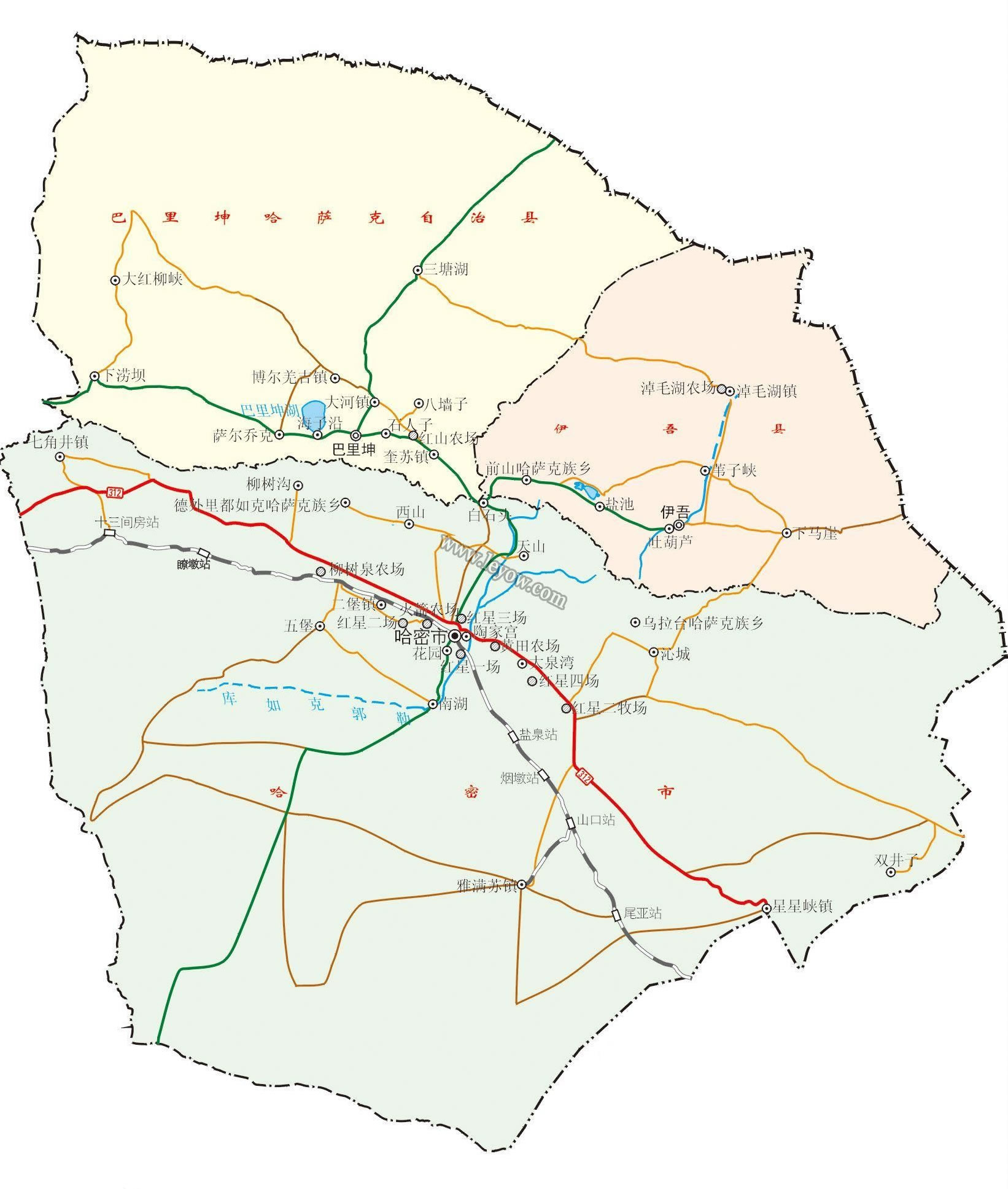 哈密市轄1個區(qū)、1個自治縣和1個縣: