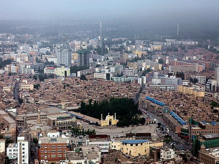 清朝自1760年在喀什噶爾設參贊大臣之后,作為天山以南的政治、經濟、文化和交通中心,喀什噶爾城人口激增,舊城區(qū)居住不下,開始向今解放路以西拓展。1762年筑徠寧城,與舊城只隔不足1公里。到1839年,徠寧城與舊城之間的地帶已全建為民居,清朝駐喀什噶爾阿奇木伯克郡王祖赫爾。词窌兴Q“阿肯木伯克早敦”)主持了擴城工程,將城西墻移至今尤木拉克協(xié)海爾路,與原徠寧城相連,在今老郵電局處新辟南門,稱“庫木代爾瓦扎”(沙門),南關一帶成為繁華的手工業(yè)區(qū),形成了以艾提尕大清真寺為中心的一座新城。