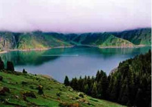 天池大海子:或稱主湖、大天池,位于博格達山脈北麓的中山峽谷森林帶內(nèi),湖面海拔1910米,成南北長方形(一說呈半月形),南北長3.5公里(3.4公里),東西寬0.5–1.5公里,周長9.7公里,平均水深60米(40米),東北處最大深度103米(102米),湖面面積一般為2.75平方公里(3.5平方公里),最大面積4.90平方公里,平均蓄水量1.3億立方米(一般為1.6億噸,最大容水量2億噸);成因眾說紛紜,有冰川形成說、斷陷形成說、崩塌形成說、泥石流形成說等,池水主要由降水、融雪水組成,其次是少量地下水補充;大天池酷似一個頭南身北的葫蘆,其南段的三工河就是葫蘆的把,湖面?zhèn)髡f是王母娘娘的梳妝鏡,名“天鏡”,故景稱為“天鏡浮空”。