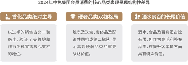 8.消費呈現(xiàn)“美妝霸榜”、“硬奢守局”、“酒水突圍”新格局。香化方面,彩妝香水增長亮眼,外籍旅客、男性客群、國潮品牌成為重要增長點,中免通過“線下定制護(hù)膚方案+線上精準(zhǔn)推送”提升復(fù)購;奢侈品及配飾方面,消費結(jié)構(gòu)多元化,超高端市場增長顯著,輕奢區(qū)間保持穩(wěn)定需求,中免以“私人導(dǎo)購+機票報銷”等尊享服務(wù)鎖定高端客群;腕表及珠寶方面,品類分化顯著,首飾品類同比增長,腕表需求區(qū)域性特征突出;酒水方面,市場擴容升級,品類及人群消費分層顯著,渠道互補發(fā)展,呈現(xiàn)出規(guī)模擴張與結(jié)構(gòu)升級并行的顯著特征;食品及百貨方面,市場穩(wěn)健擴容,圈層特征鮮明,Z世代和銀發(fā)人群引發(fā)情感和健康消費變革,中免針對性布局“國潮品牌+細(xì)分場景”,精準(zhǔn)匹配圈層需求。中免集團(tuán)已形成包含精品、香化、煙酒等全品類、超36萬SKU的商品矩陣,并在2024年成功引入200多個新品牌,獨家發(fā)售19個系列500余款全球限量商品,商品競爭力持續(xù)增強。