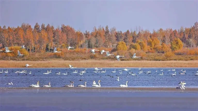 黨大朋介紹,隨著生態(tài)環(huán)境持續(xù)改善,這里已成為候鳥遷徙途中的重要補(bǔ)給站和棲息地。“這里目前已記錄到的鳥類超過150種,包括灰鶴、大天鵝、白鷺等國家重點(diǎn)保護(hù)鳥類。隨著遷徙高峰即將到來,會有更多候鳥陸續(xù)抵達(dá)。”黨大朋說。