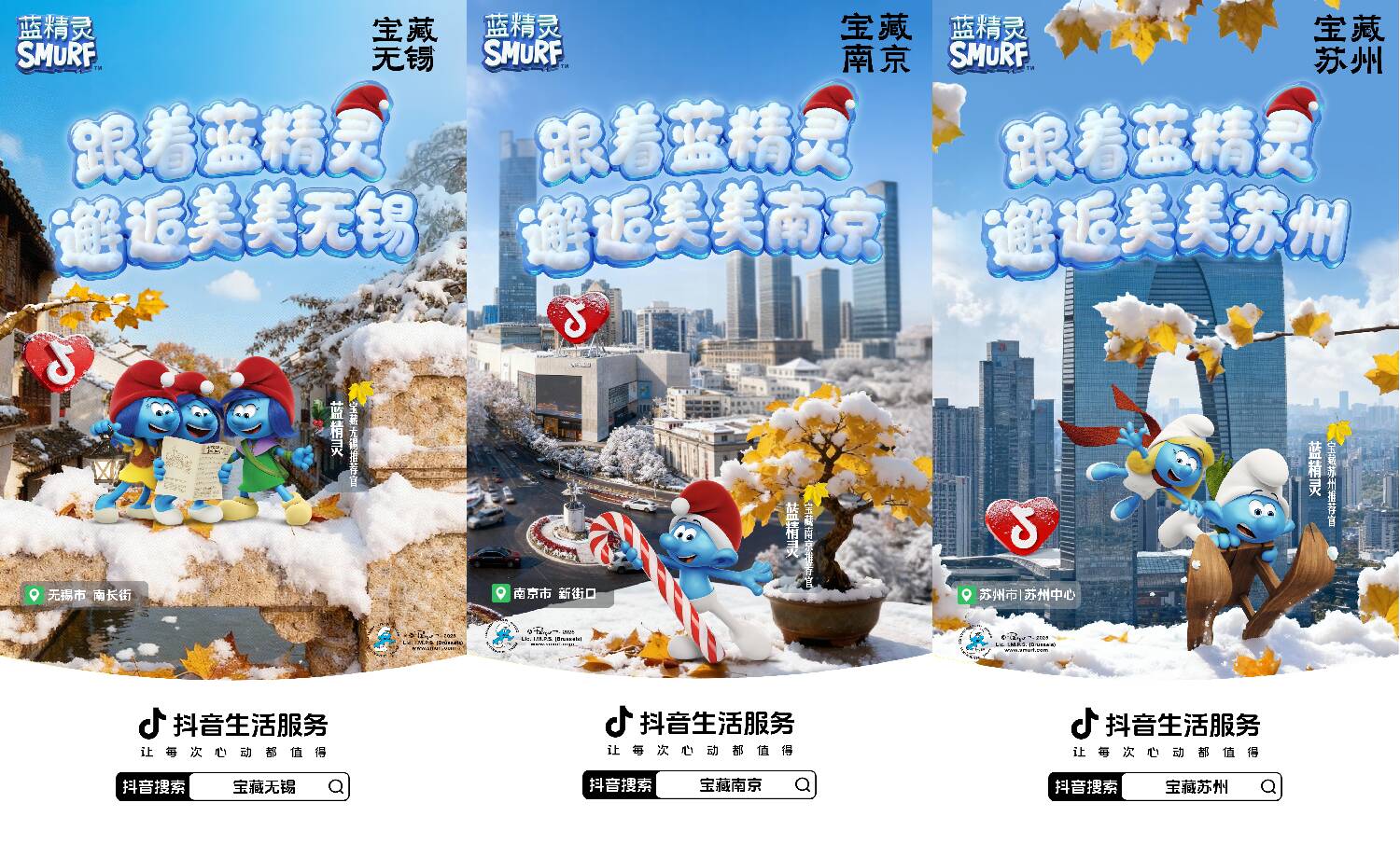 藍(lán)精靈IP的加入,則讓江南秋冬更添童趣。抖音生活服務(wù)打造藍(lán)精靈主題“美美巴士”,在南京、蘇州、無錫三城核心商圈與景區(qū)巡游,用戶打卡合影、帶話題發(fā)視頻即可領(lǐng)取限定周邊與商家優(yōu)惠券。與此同時,“城市隱藏藍(lán)精靈”打卡活動同步上線,聯(lián)動40多個商家鋪設(shè)主題物料,用戶跟著巡游地圖打卡就能兌換禮品,有效拉動線下交易,12月10日-19日,參與商家掃碼核銷GMV環(huán)比日均增長19.5%。