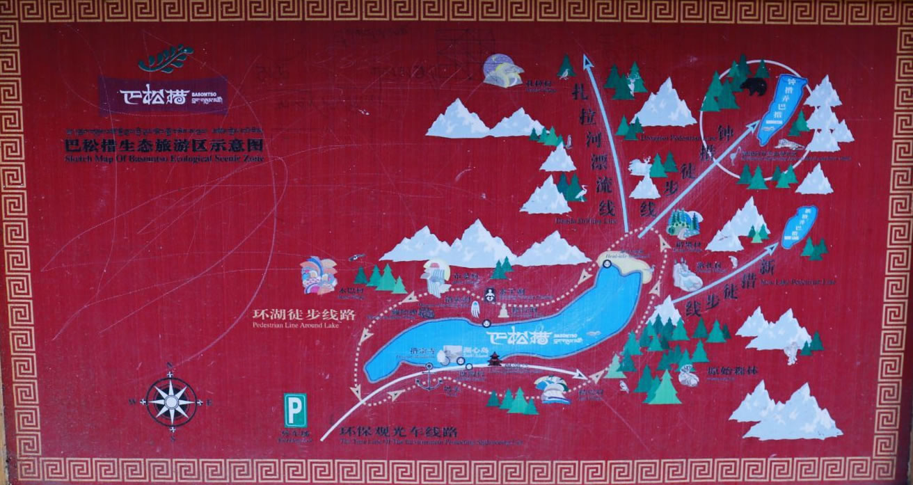 巴松措位于318國(guó)道旁,來(lái)往車輛較多,交通便利。如搭車前往,在公路邊會(huì)看到“巴松措風(fēng)景區(qū)”指示牌的岔路口下車即可,然后從巴河鎮(zhèn)北行約36公里便可抵達(dá)巴松措湖邊。