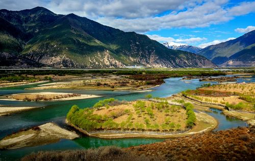 從空中或從西興拉等山口鳥瞰大峽谷,在東喜馬拉雅山無數(shù)雪峰和碧綠的群山之中,雅魯藏布江硬是切出一條筆陡的峽谷,穿越高山屏障,圍繞南迦巴瓦峰作奇特的大拐彎,南瀉注入印度洋,其壯麗奇特?zé)o與倫比。