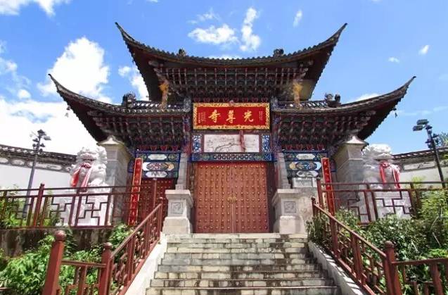保山光尊寺,位于隆陽區(qū)板橋鎮(zhèn)世科村后的五鳳朝陽山。唐天寶二年(743年),南詔王皮邏閣為祭祀佛教尊神而建。座東朝西,依山形筑成七進五院,計有建筑物23幢,占地面積9000余平方米。是古代保山典型的三教合一的寺廟,又是保山現(xiàn)存寺廟規(guī)模最大的建筑群。太平洋戰(zhàn)爭爆發(fā)時期,中國遠(yuǎn)征軍在此處設(shè)滇西抗戰(zhàn)指揮部。 2009年10月7日,光尊寺被列為第八批國家重點文物保護單位。