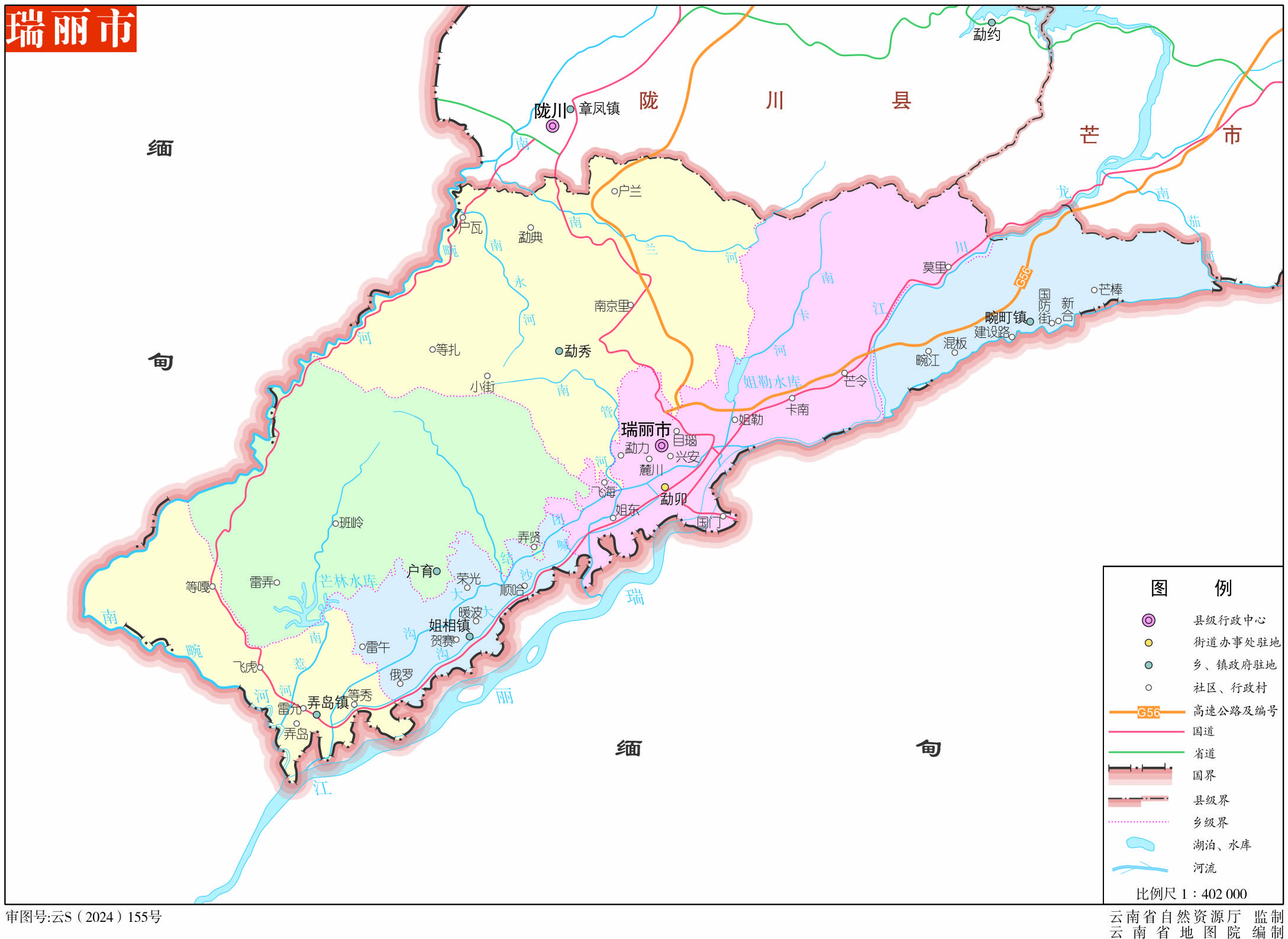 鎮(zhèn):畹町鎮(zhèn)、弄島鎮(zhèn)、姐相鎮(zhèn)