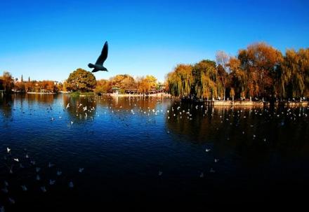 翠湖位于昆明市五華山西麓,占地面積352畝。湖東北有“九泉所出,匯而成池”,故又名“九龍池”。堤畔遍植垂柳,柳枝拂面,湖內多種荷花,藕花飄香,舊有“十畝荷花魚世界,半城楊柳撫樓臺”之聯,被譽為“城中碧玉”。有亭、臺、回廊、曲橋等建筑,其建筑精致玲瓏,亭閣均有匾對,歌詠園中的景觀。