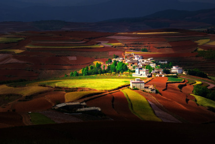 東川紅土地被專家認為是全世界除巴西里約熱內盧外最有氣勢的紅土地,而其景象比巴西紅土地更為壯美。東川紅土地指的是位于昆明市東川區(qū)西南40多千米的新田鄉(xiāng)、有一名叫“花石頭”(在109千米程碑處)的地方,這里方圓近百里的區(qū)域是云南紅土高原上最集中、最典型、最具特色的紅土地。