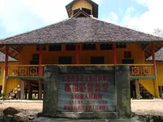 糯福鄉(xiāng)基督教堂清宣統(tǒng)二年(1910年)美國基督教浸信會緬甸景棟教會派牧師到孟連東乃等地傳教。民國五年(1916年),派撒臘比布到瀾滄?zhèn)鹘獭C駠拍辏?920年),美國牧師主持糯福教務(wù),于民國十一年(1922年)修建教堂。糯福教堂為瀾滄、雙江、滄源、耿馬等地的基督教會總部。為便于傳教,永偉業(yè)用拉丁字母為拉祜族創(chuàng)造了拉祜文字。糯福教堂總面積506.6平方米,融合西洋與當(dāng)?shù)孛褡褰ㄖ问健?987年被列為省級文物保護(hù)單位。