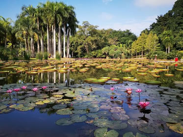 水生植物園水面面積15畝,收集和展示熱帶地區(qū)種類繁多的水生植物,現(xiàn)收集保存了約100種(品種)。該園按照水體深淺等水濕小環(huán)境和植物生態(tài)習(xí)性分別種植了不同生活形態(tài)的水生植物,包括:浮葉植物——植物根系或地下莖扎根水底,莖生長于水中,葉柄長度可隨水位而伸長,葉及花朵浮在水面上的水生植物,如王蓮、睡蓮、芡實、萍蓬草。浮水植物——植株整體漂浮于水面,根部不生于泥中,可隨水流四處漂泊的植物,如雨久花、滿江紅、鳳眼蓮、美洲槐葉萍、紫萍、大漂、眼子菜、荇菜。沉水植物——完全的水生植物,大部分生活周期中植株沉水生活,它們多生活在水較深的地方,根長在土里,葉片通常呈線形、帶狀,如金魚藻、黃花貍藻、黑藻等。挺水植物——下部或基部沉于水中,根或地下莖扎于泥中生長發(fā)育,上部植株挺出水面,通常生長在淺水或水邊的水生植物。如荷花、紙莎草、畦畔莎草、水蔥、長節(jié)淡竹芋、白粉塔里亞、水芋、水生馬蹄、撒金澤瀉、澤瀉、黃花藺、千屈菜、蔗草、菖蒲、慈姑、黃花鳶尾。濱水植物——生長在岸邊或堤岸潮濕的地方,喜水耐濕,如水杉、落羽杉、水松、木芙蓉等。