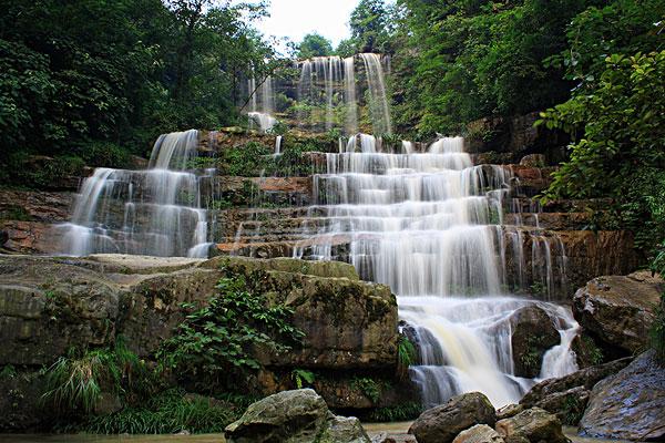 大關(guān)黃連河瀑布群距昭通市大關(guān)縣城5公里,有專線公路及中巴車直達(dá)景區(qū)。沿途山花爛漫、幽谷縱橫、清泉奔涌、鳥語(yǔ)花香。主要景點(diǎn)有仙女瀑、情郎瀑、少女瀑、月老瀑、鴛鴦瀑、洞房瀑、相思瀑、對(duì)歌瀑、姊妹瀑、銀鏈瀑、迎客瀑、壽星瀑、珠簾瀑及神秘莫測(cè)、千姿百態(tài)的白象洞,令人心曠神怡的水簾長(zhǎng)廊和使人銷魂愜意的大滑板等20多處。加上形似飛鴿的世界珍稀植物珙桐花,堪稱天下奇景。