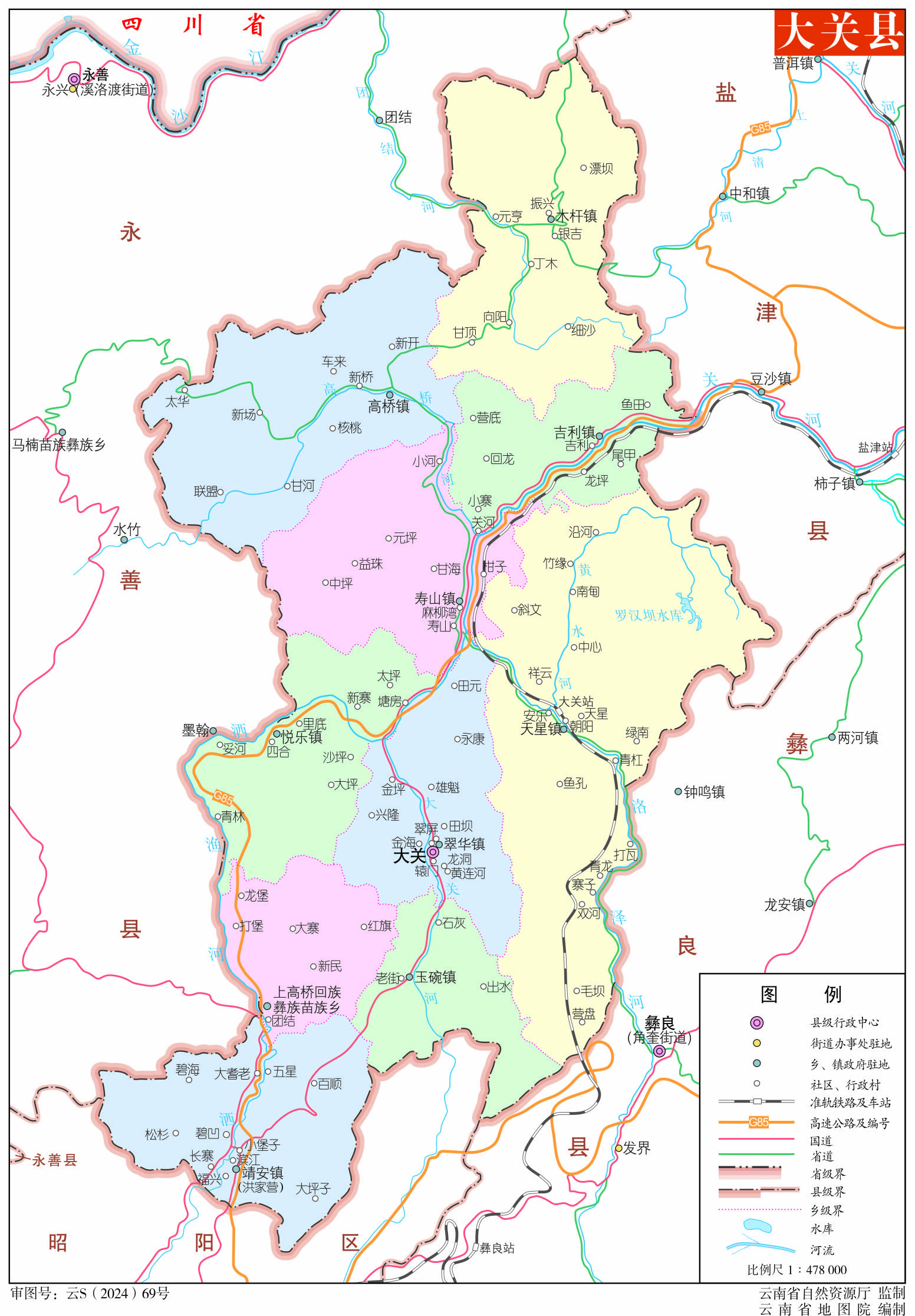 大關(guān)縣轄8個(gè)鎮(zhèn)、1個(gè)鄉(xiāng):