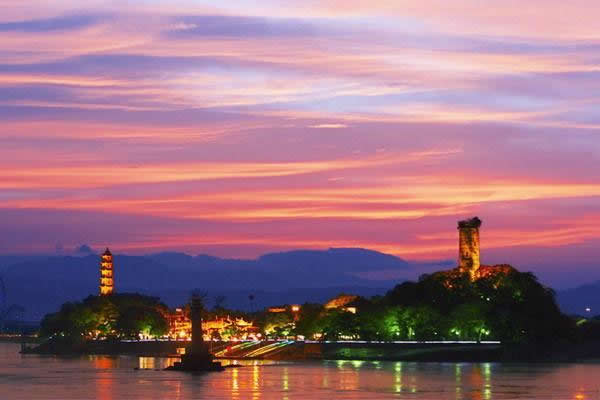 2006年6月,江心嶼燈光秀開始動工建設,動用現(xiàn)代影射原理和多種手法,重點突出二塔一寺。