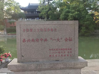 南湖不僅以秀麗的風(fēng)光享有盛譽(yù),而且還因中國(guó)共產(chǎn)黨第一次全國(guó)代表大會(huì)在這里勝利閉幕而備受世人矚目,成為我國(guó)近代史上重要的革命紀(jì)念地。1921年7月23日,中國(guó)共產(chǎn)黨第一次全國(guó)代表大會(huì)在上海秘密召開(kāi)。會(huì)議臨近結(jié)束時(shí),遭法租界巡捕的襲擾而被迫停會(huì)。根據(jù)上海代表李達(dá)的夫人王會(huì)悟的建議,8月1日會(huì)議轉(zhuǎn)移到嘉興南湖的一條游船上繼續(xù)舉行。在這條紅船上,會(huì)議通過(guò)了中國(guó)共產(chǎn)黨的第一個(gè)《綱領(lǐng)》和第一個(gè)《決議》,并選舉了黨的中央局領(lǐng)導(dǎo)機(jī)構(gòu),宣告了中國(guó)共產(chǎn)黨的誕生,中國(guó)革命的航船從此揚(yáng)帆起航。