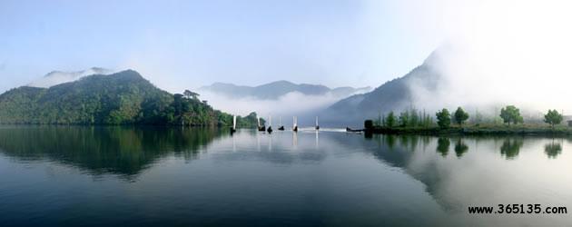 仙宮湖:崛立在云和縣緊水灘的浙南第一壩緊水灘水電站大壩,將滔滔甌江攔腰鎖住。在水電站建成的同時(shí),浙南的茫茫林海中奇跡般地出現(xiàn)了一個(gè)巨大的人工湖緊水灘庫湖。1993年8月9日經(jīng)地區(qū)行署批準(zhǔn),改名為仙宮湖。放眼全湖,碧波蕩漾,晶瑩似鏡,周圍千姿百態(tài)的奇巖異峰、浩如煙海松濤,點(diǎn)綴湖邊的村莊、田野和山林,好似一幅色彩斑斕,絢麗多姿的山水畫。這里廣闊的湖面,煙波浩渺,水山相連,望不盡頭。與千島湖相比,雖無“千島”之態(tài)。但湖中島嶼正在一個(gè)個(gè)形成。隨著蓄水位的漸漸增高,將會出現(xiàn)更多“湖心之島”。那晶瑩澄碧的湖水在陽光的照射下,閃著瀲滟的波光,似一顆閃眼的明珠,鑲嵌在群山峻嶺之中。湖兩旁的松杉。翠竹掩映于湖唇,好似繡上一道花邊,君若泛舟湖中,其可謂“人行明鏡中”了。倘若天氣作變,更給景色增添妙異的變幻。晴天,頭上藍(lán)天萬里,腳下碧波千頃,點(diǎn)點(diǎn)白帆移動,轟轟船只掠過,舉目望去,山水一色;回首顧盼,卻置身于綠水青山之中。雨天,霧靄茫茫,層林碧水連成一片,人在湖面,有身置云霧瓊樓仙境之感。尤其在赤石、龍門一帶,水域?qū)掗,島嶼列布,湖區(qū)四周還有“九潭十八灣”、“夏洞天”、“龍老洞”、“蝴蝶洞”、“牛頭山”等勝景。仙宮湖不愧為特具魅力的旅游勝地。