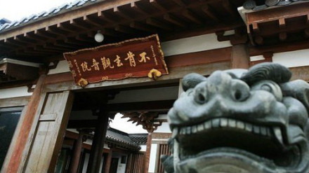 不肯去觀音院,位于紫竹林。不肯去觀音院是當年慧鍔法師供奉不肯去觀音的地方,是普陀山觀音道場的發(fā)源地。現(xiàn)殿內供仿唐式十一面觀音像,寺院西側筑“三十三觀音靈場”長廊,內塑日本33座供奉觀音的寺院主尊。
