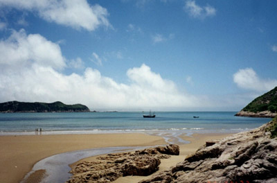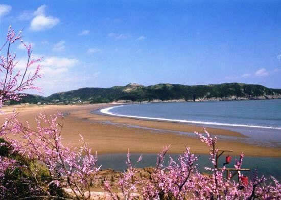 千步金沙——長(zhǎng)1370米,寬400余米,從面積來說,是舟山群島第二大沙灘。從沙質(zhì)方面來書是進(jìn)行海浴、沙浴、陽(yáng)光浴和沙灘漫步較理想、優(yōu)質(zhì)的沙灘。千步金沙屬細(xì)型沙質(zhì),細(xì)軟純凈,與普陀山的白步沙、千步沙和嵊泗的基湖沙灘相比較要細(xì)軟得多,與朱家尖的東沙、南沙相似,但還要松軟一些,且沙灘上沿有部分植被覆蓋,這一點(diǎn)其它沙灘是很難找到的。