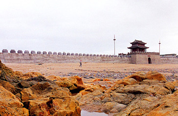 定海城——位于鵓鴣門后門沙灘上,是電影《鴉片戰(zhàn)爭(zhēng)》舟山攝制地主要景點(diǎn)之一,《鴉片戰(zhàn)爭(zhēng)》定海保衛(wèi)戰(zhàn)是整部電影的高潮,戰(zhàn)斗場(chǎng)面悲壯激烈,表現(xiàn)中國(guó)人民不屈不撓的精神。整個(gè)城墻長(zhǎng)230米,寬12米,最高處12米,設(shè)城樓、古炮位、箭垛、旗桿等設(shè)施,飛檐翅角,黑瓦紅墻,整座城墻古樸典雅,雄偉壯麗。