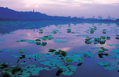 杭州西湖,是一處以秀麗清雅的湖光山色與璀璨豐蘊(yùn)的文物古跡和文化藝術(shù)交融一體的國(guó)家級(jí)風(fēng)景名勝區(qū)。她以秀麗的西湖為中心,三面云山,中涵碧水,面積60平方公里,其中湖面為5.68平方公里。沿湖地帶綠蔭環(huán)抱,山色蔥蘢,畫(huà)橋煙柳,云樹(shù)籠紗,逶迤群山之間,林泉秀美,溪澗幽深。90多處各具特色的公園、風(fēng)景點(diǎn)中,有三秋桂子、六橋煙柳、九里云松、十里荷花,更有著名的“西湖十景”以及近年來(lái)相繼建成開(kāi)放的十多處各具特色的新景點(diǎn),將西湖連綴成了色彩斑斕的大花環(huán),使其春夏秋冬各有景色,晴雨風(fēng)雪各有情致。