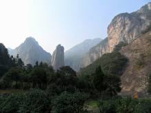 南雁蕩山,簡稱南雁,位于平陽縣西部,距溫州市區(qū)87千米。主峰明王峰,海拔1080米,山頂有泥塘沼澤,秋科時節(jié)有大雁在此棲息,且與北雁蕩山遙望相對,故名南雁蕩。南雁蕩山總面積97.68平方千米,群巒疊翠,飛瀑溪潭,共有67峰、28巖、24洞、13潭、8潭、9石。南雁蕩的開發(fā)較早于北雁蕩,五代時高僧愿齊就率三百名門徒在此開發(fā)。