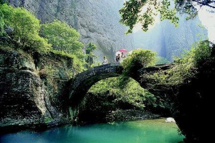 顯勝門景區(qū)范圍呈東北西南走向的狹長形。主要景點基本都分布在沸頭—南閤溪兩岸。徐霞客曾在游記中寫道:“溪北大山,自籍裊迤邐而來,皆層崖怪峰,變換闔辟,與云霧爭幻!笨芍^一語中的,道出了該區(qū)風(fēng)景的特點。